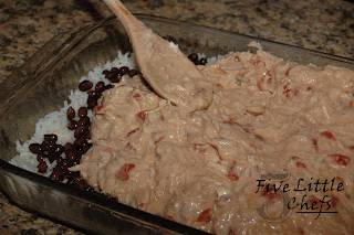 We thought it would be fun to try some recipes from other blogs. The first recipe we are trying is Chicken and Black Bean Green Enchilada Rice Bake from Picky-Palate. The Little Chefs thought they could do this recipe because it is a simple dump recipe with most everything from a can. I like this recipe because it is common pantry items.