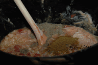 The recipe calls for chicken. I thought it would be interesting to try canned chicken because then it would be a great pantry recipe. Little Chef D broke up the canned chicken.