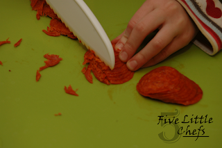 Curious Chef is a company that has products for kids in the kitchen. I was looking for something that my Little Chefs could use without me wincing each time they cut! There were mixed reviews for these knives, but I decided to go for it anyway. When we first received the package my Little Chefs were so excited to “have a knife of their own.” They wanted to make a recipe everyday where they had to cut something.