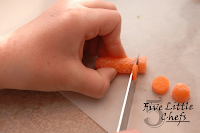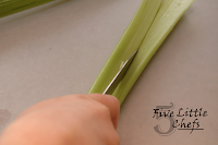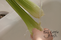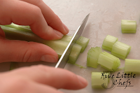 With her newly aquired knife skills she washed and cut the celery and the carrots into bite sized pieces.