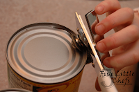 Little Chef C wanted to help open up the cans; corn, tomatoes, refried beans. The first part cutting through is so hard. After I get it going for her she is able to do the rest.