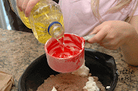 The sour cream and oil followed next. After learning from making the German Pancakes she said, “It doesn’t matter if the sour cream and oil gets mixed in [the measuring cup]. It will anyway.”